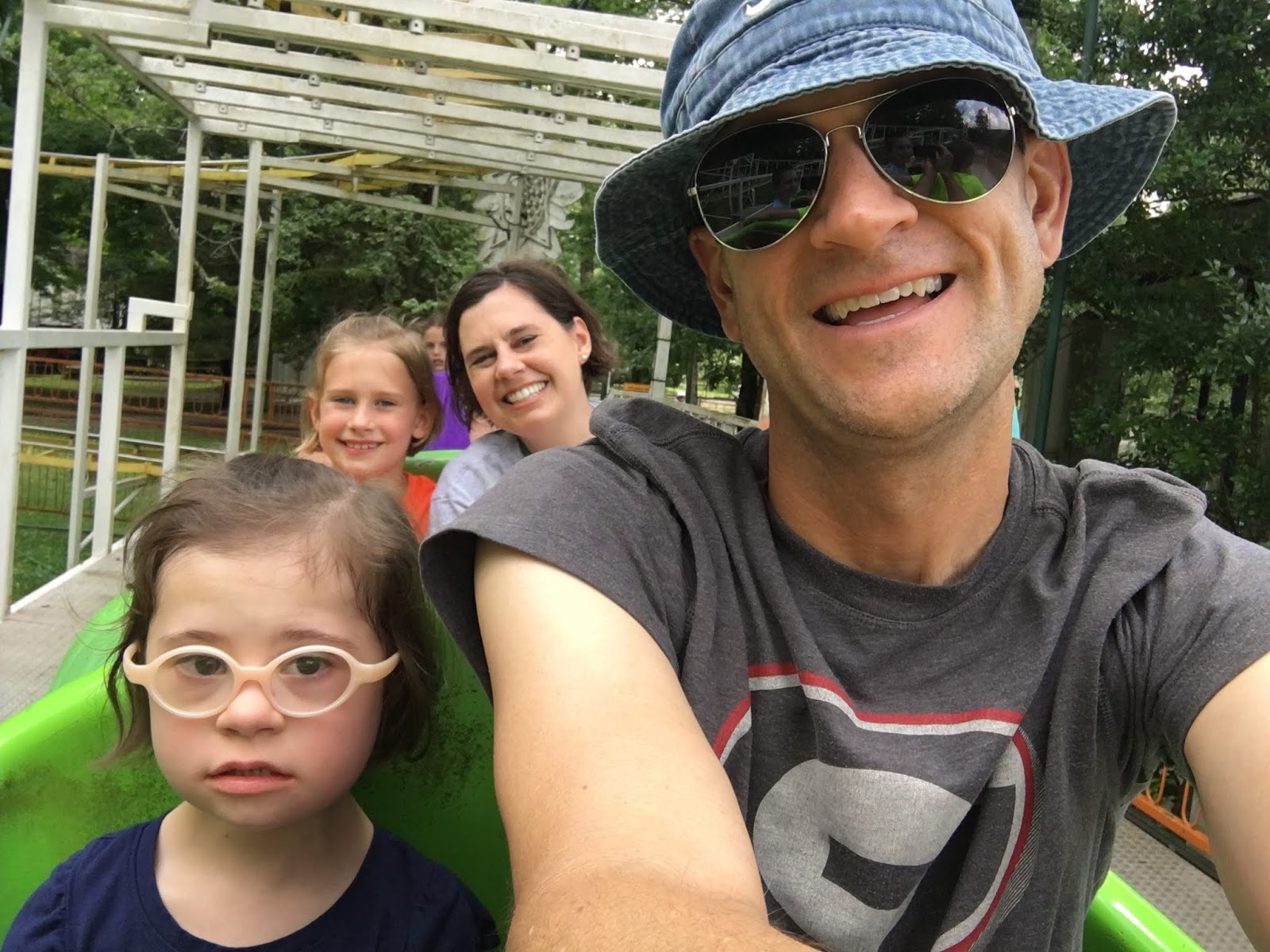 Ellie's first roller coaster! Can you see she's thrilled???!!